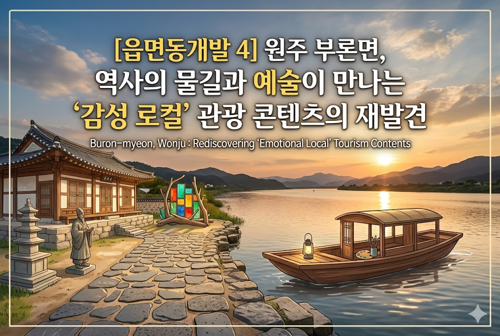마지막 단계는 부론면만의 독자적인 '브랜드'를 정립하는 것입니다. 행정, 역사, 자연, 예술이 통합된 결과물로서의 브랜드는 인위적인 홍보보다 강력한 힘을 가집니다. 주민 스스로가 마을의 가치를 전파하는 주체가 되어 방문객과 소통할 때, 관광객은 그 진심에 반응하여 충성도 높은 팬이 됩니다. 부론면의 각 법정리가 가진 고유 자원을 데이터화하고 이를 여행자의 요구와 정교하게 매칭시킨다면, 부론면은 전국적인 로컬 브랜드로 거듭날 것이며 이는 곧 원주 전체의 관광 경쟁력을 비약적으로 상승시키는 핵심적인 역할을 수행하게 될 것입니다.