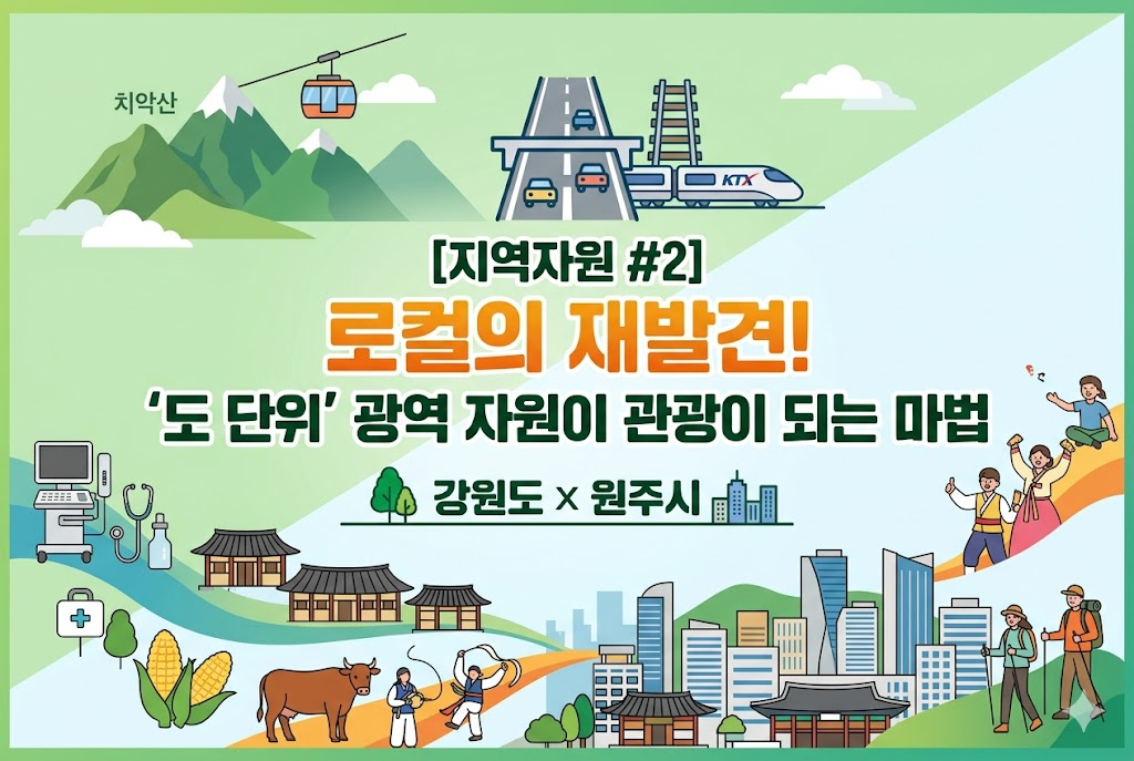우리가 여행지를 고를 때 "원주에 가자"라고 말하기도 하지만, 때로는 "강원도 여행 가고 싶다"라는 광역적 이미지에 이끌리곤 합니다. 🌲 이것이 바로 '도(道) 단위'가 가진 힘입니다. 지리적 특성, 기후, 그리고 그 땅이 품은 거대한 산업 구조는 단순히 행정 구역의 경계를 넘어, 그 안에 속한 도시들의 관광 DNA를 결정짓는 중요한 밑바탕이 됩니다. 강원도의 험준한 산맥이 원주의 '치악산'을 만들고, 광역 교통망이 원주를 '관광 거점'으로 변모시킨 것처럼, 오늘은 이 거대한 흐름의 설계도를 깊이 있게 살펴보겠습니다!